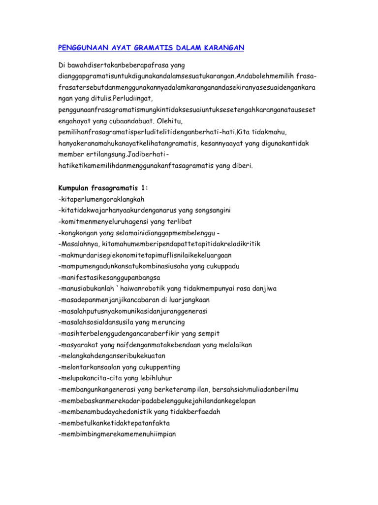 Ayat pendahuluan karangan yang gramatis. Contoh Ayat Gramatis Karangan Spm By Ise_300Madeleine 07 Jun 2022 Post a Comment Contoh Ayat Gramatis Dalam Karangan Penggunaan Ayat Gramatis Dalam Karangan Pdf Contoh Ayat Gramatis Pdf Contoh Ayat Gramatis Dalam Karangan Ayat Gramatis Dalam Karangan Pdf Share. Koleksi Contoh Karangan SPM Bahasa Melayu Sijil Pelajaran Malaysia Berikut adalah contoh-contoh karangan mengikut tema yang selalu digunakan sebagai tajuk soalan karangan Bahasa Melayu.